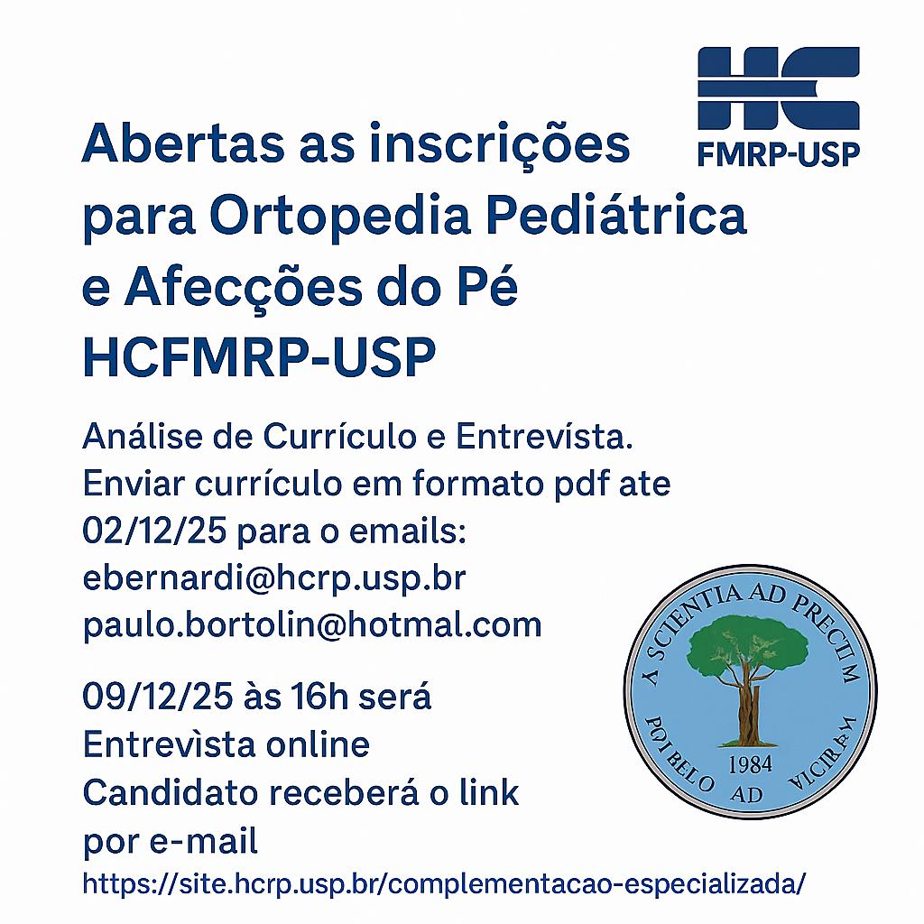 HCFMRP-USP: Processo Seletivo em Ortopedia Pediátrica 2026